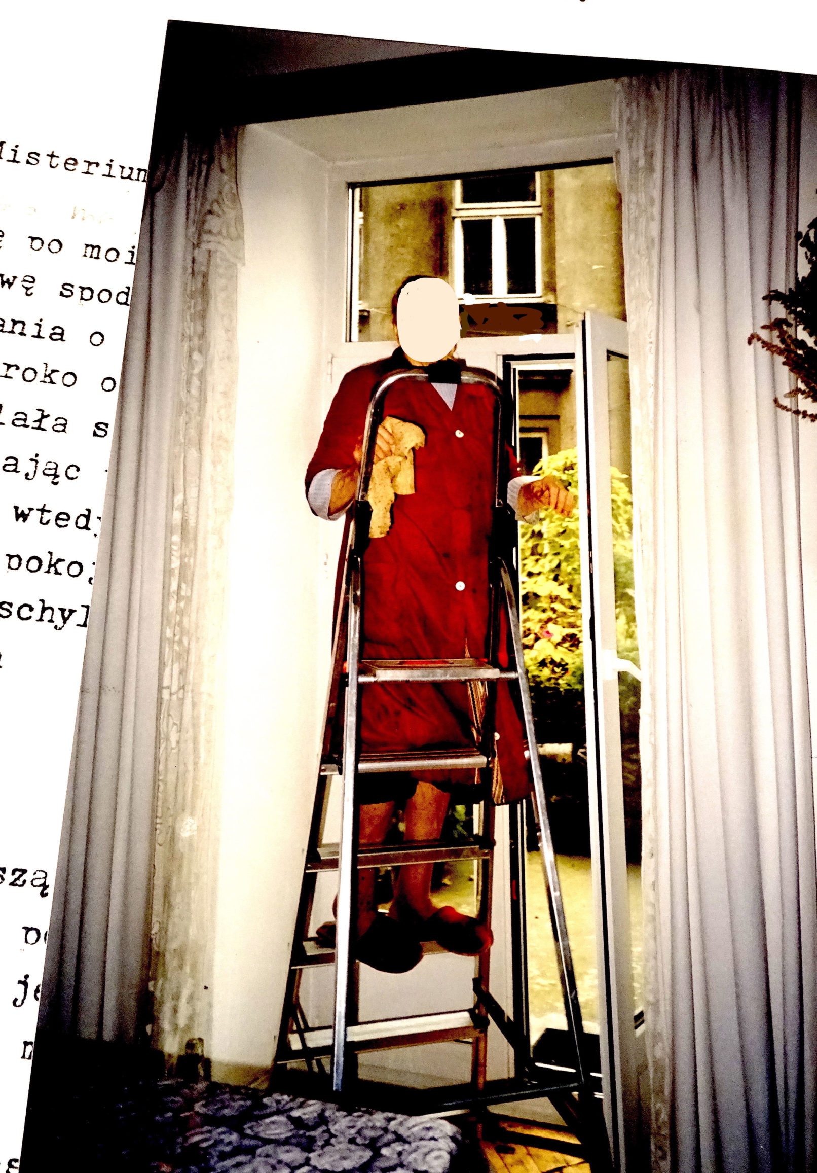 OLD LADY: Maryśka died… too bad it was so late. Stach will never forgive her. She seduced him on a sleigh ride. /To CLEANING LADY I/ Zosia was my friend from school. She’s afraid to take the elevator and so we meet through the intercom. It’s getting harder and harder to hear her.
